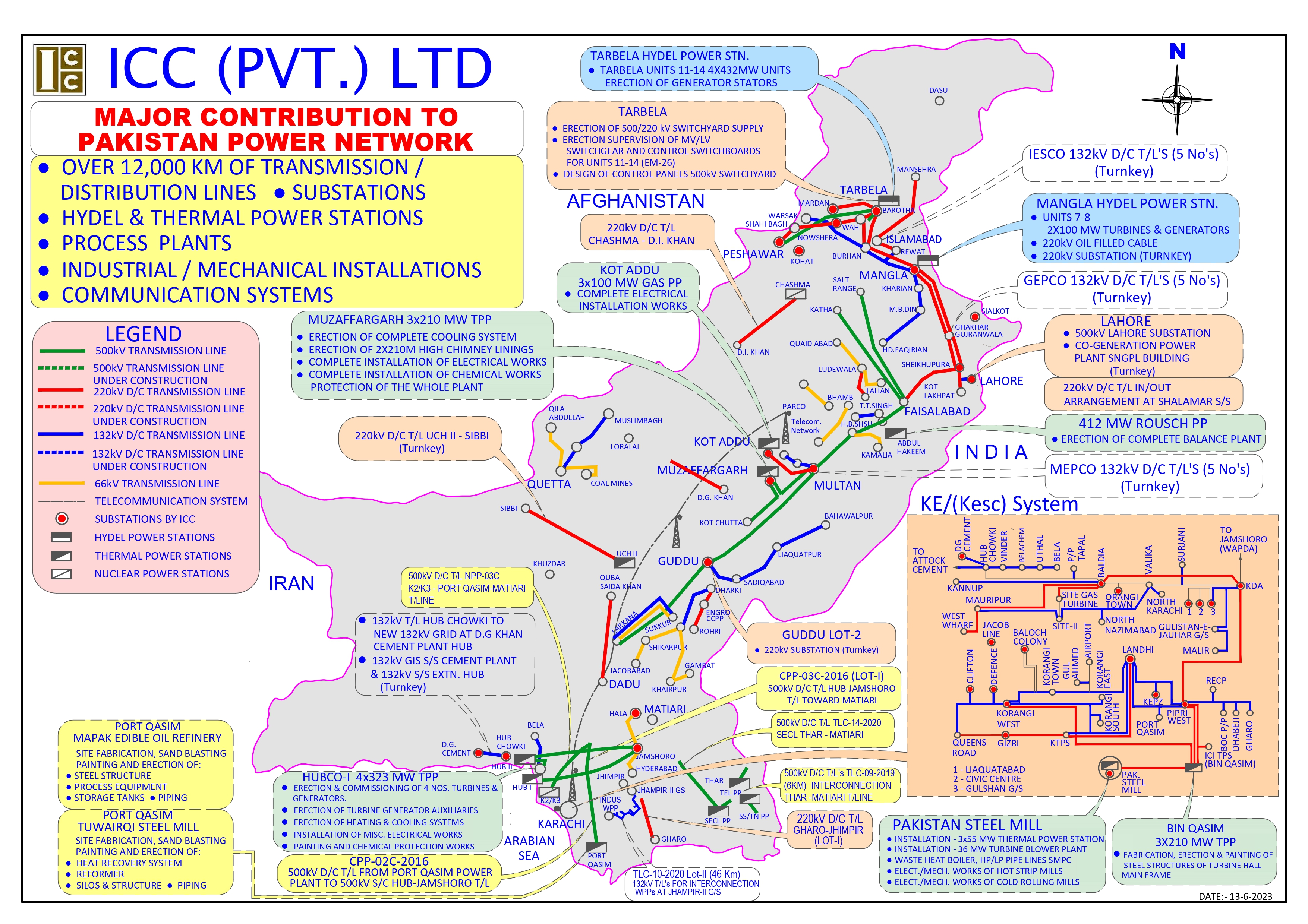 ICC ( Pvt. ) Limited has played a vital and active role in achieving the objective of self-sufficiency in Electrical Technology in Pakistan. Over the last half century ICC has worked side-by-side with WAPDA, KESC and Pakistan Steel Mills and has made a major contribution towards the construction of high voltage Transmission Networks, Substations and Power Stations in the country. It is proud of the reputation earned in this period, which is reflected through a dynamic list of achievements in the field of Electrical and Mechanical Construction.