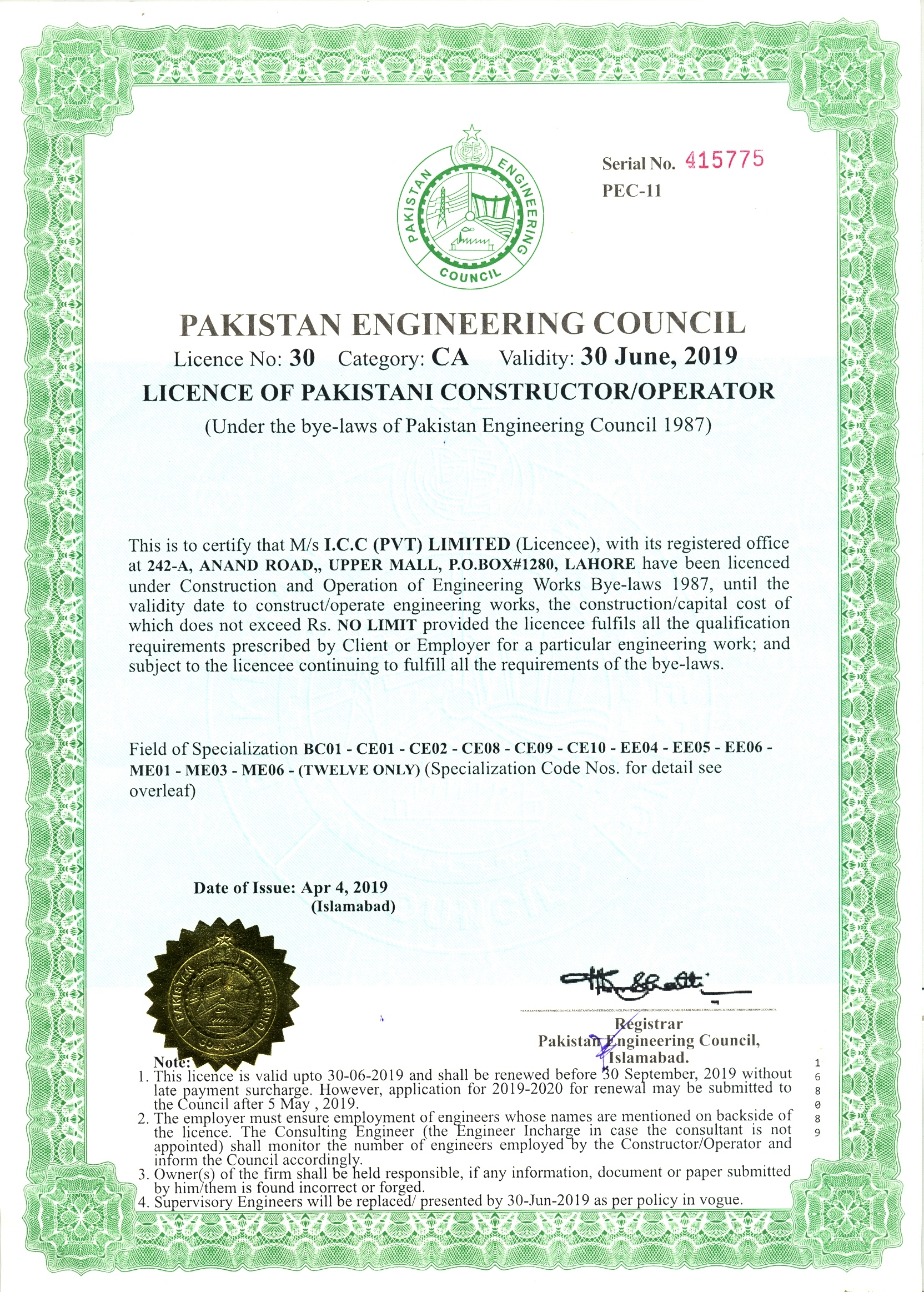 ICC ( Pvt. ) Limited | Certifications